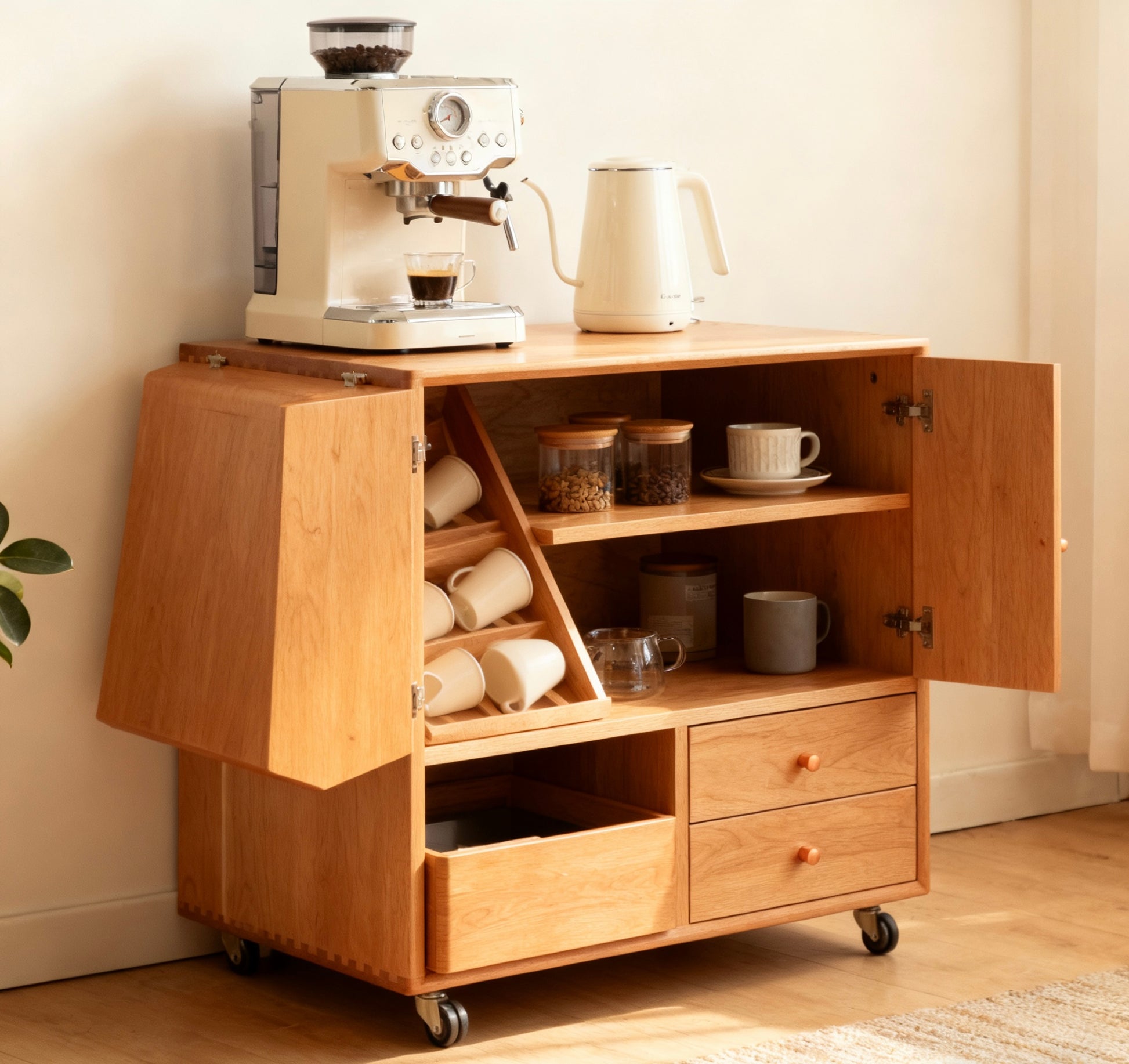 原木C字櫃(加大容量款)- 咖啡機專屬收納,客廳餐邊一體實用款