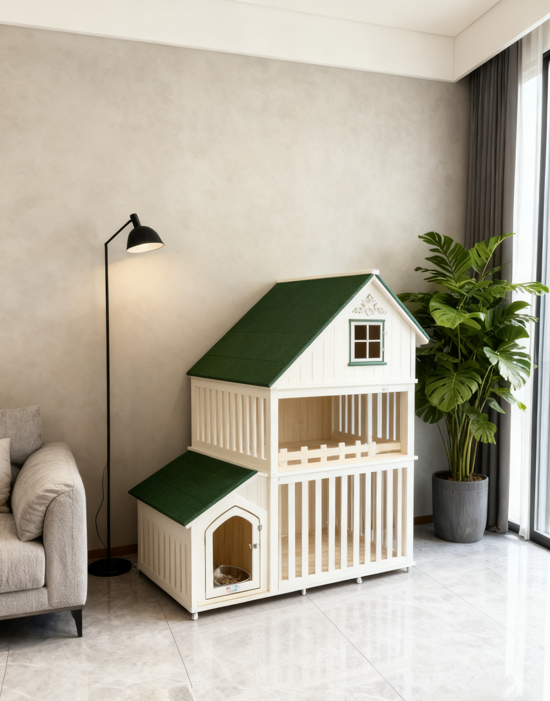 呢座充滿歐陸風情嘅雙層貓別墅,絕對係香港貓奴寵愛主子嘅終極選擇!純白木質搭配翠綠屋頂,擺喺客廳即刻提升格調,與你嘅時尚家居完美融合。