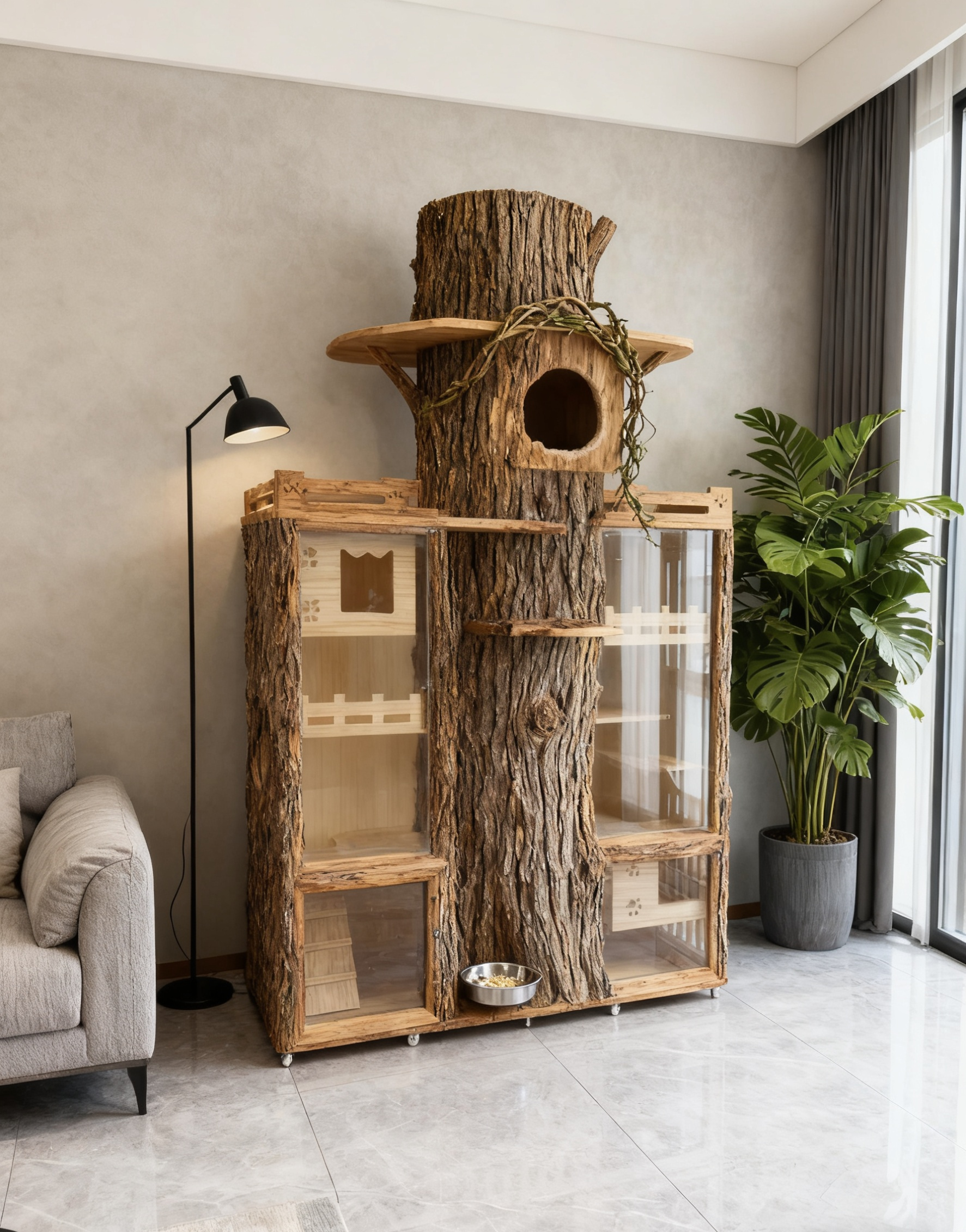 在寸土寸金的香港居所,給愛貓打造一方媲美私人莊園的森系奢居。以天然樹幹為骨,純木工藝為魂,將野外樹屋的野趣與高端傢俱的質感融為一體,既是貓主子縱情攀爬、休憩賞景的私密天地,更是你家客廳彰顯品味的藝術陳列。