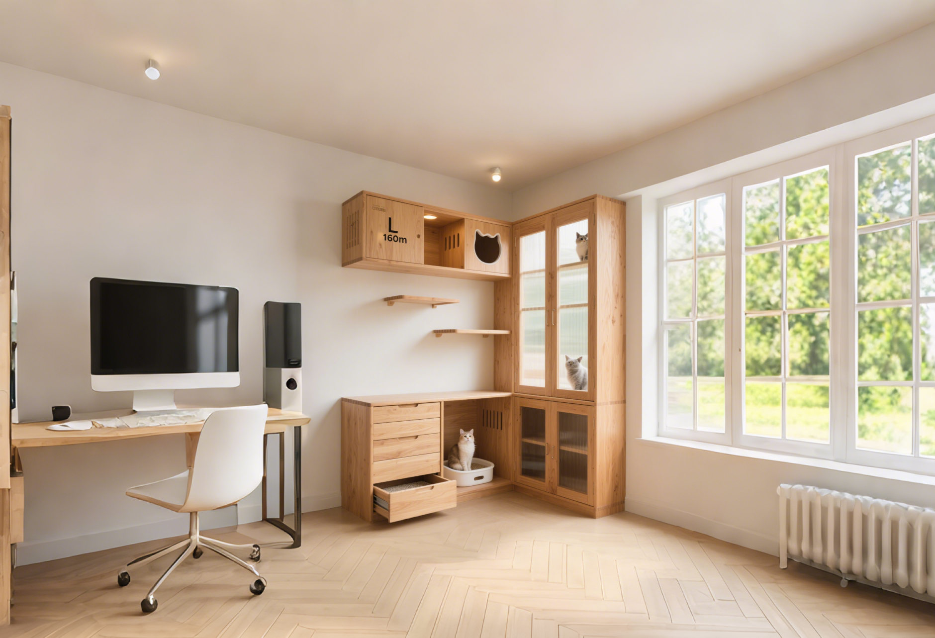 仲有埋窗邊高櫃設計,貓貓可以係度睇風景、曬太陽,生活寫意到極!無論你係追求極簡嘅港漂,定係鍾意實用設計嘅本地貓奴,呢套貓別墅都係寵物家居嘅智慧之選~